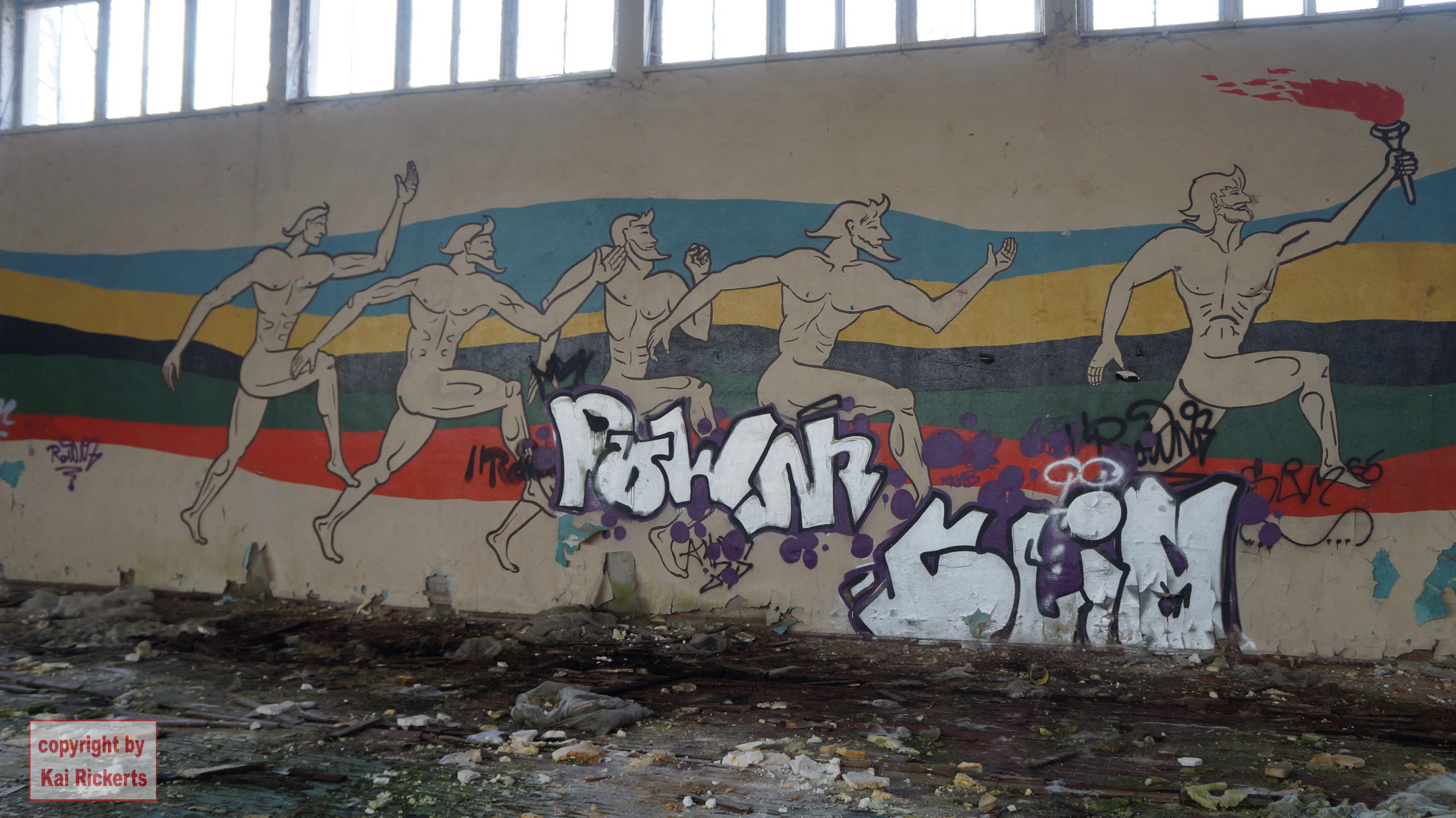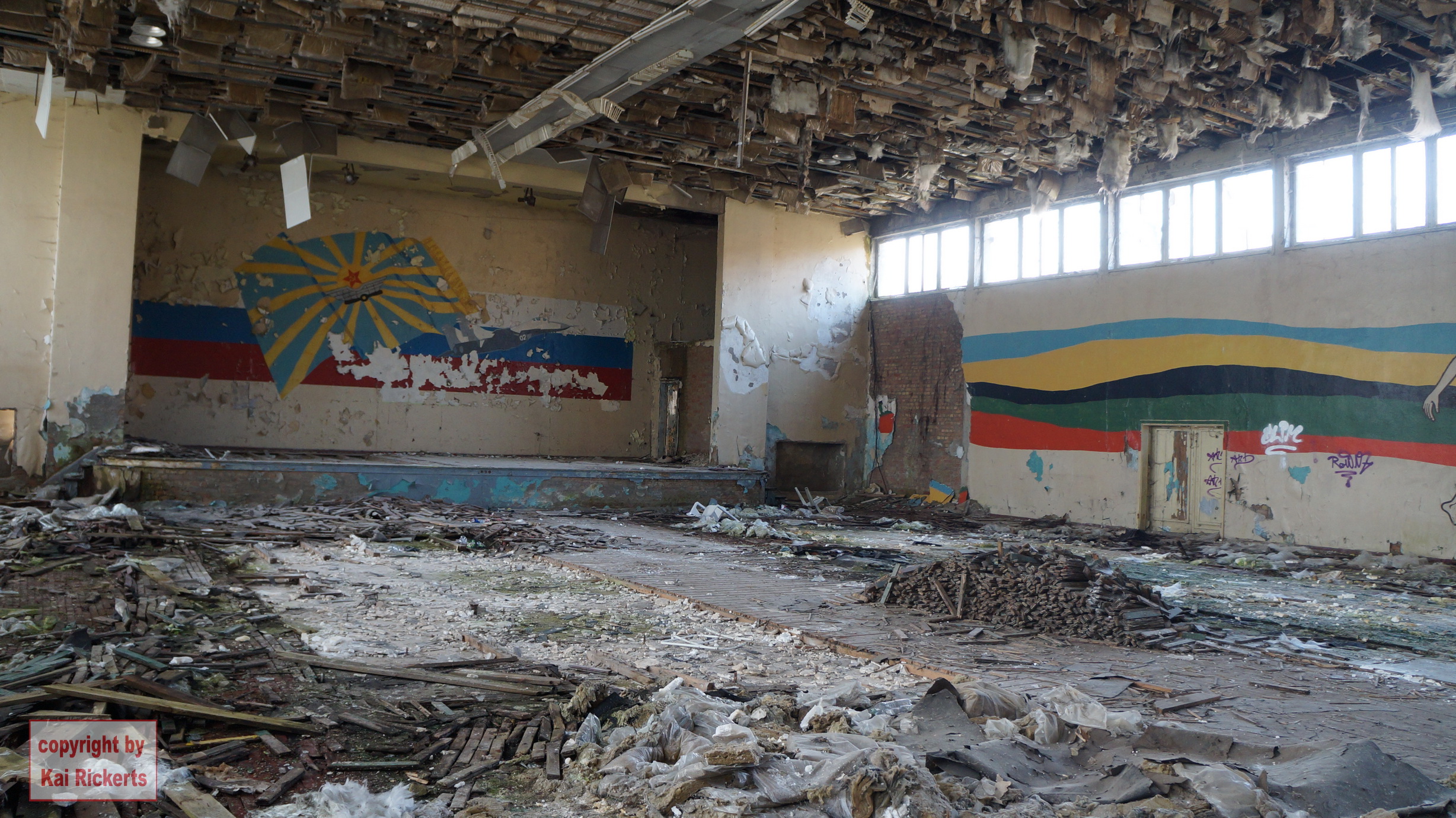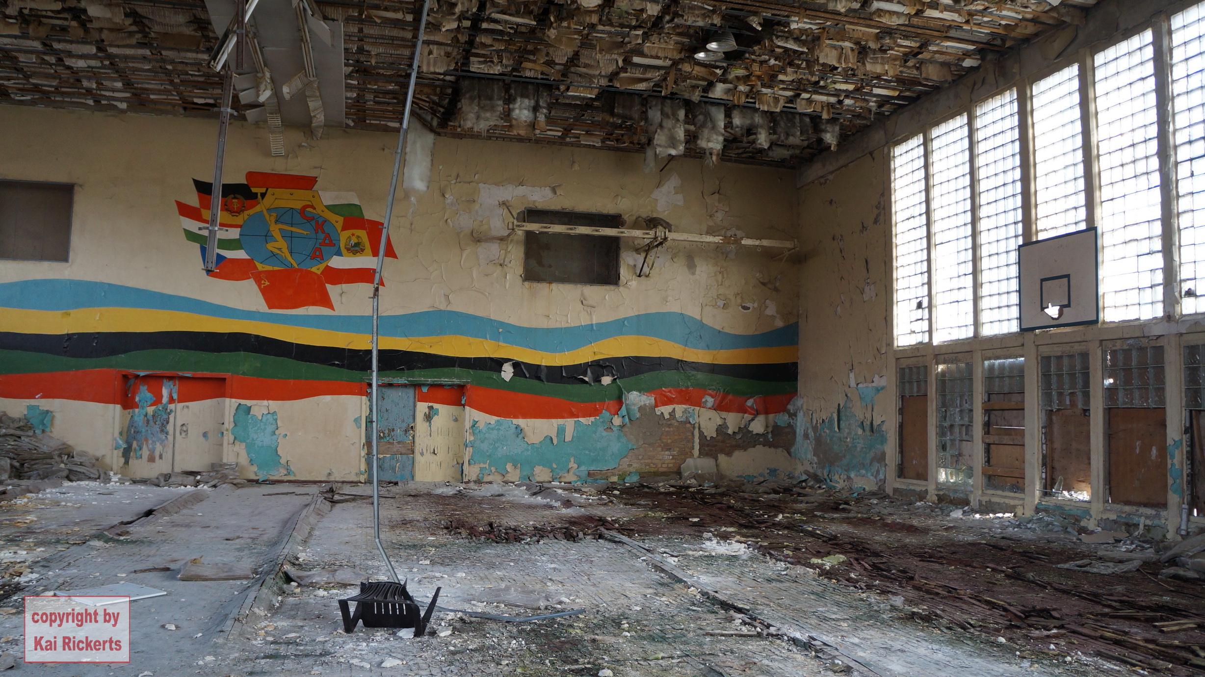 Manchmal ist man auf einer Exkursion und dann steht einfach so eine alte sowjetische Turnhalle mit einer offenen Tür in der Gegend rum...
